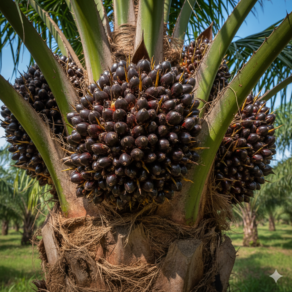 - Planting and Growth: Oil palms are usually propagated from seeds or tissue-cultured seedlings. They start bearing fruit in 3–4 years and reach peak production around 7–18 years of age.